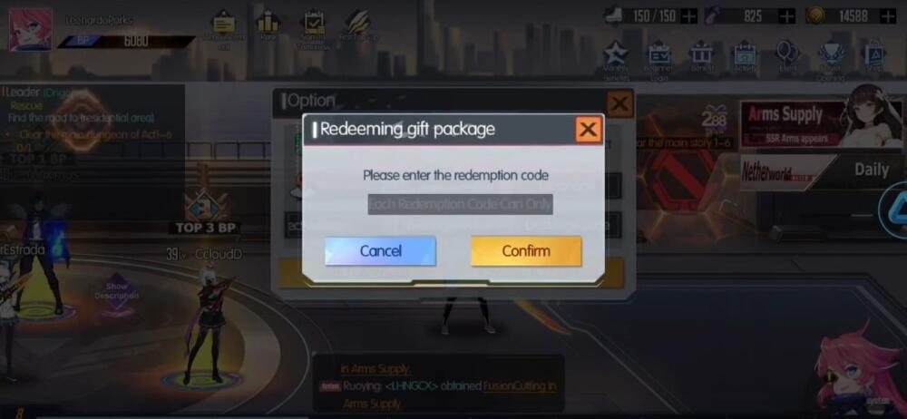 Bước 5: Nhập mã quà tặng ở bảng trên vào ô chứa văn bản. Sau đó bấm “Confirm” để nhận phần thưởng.