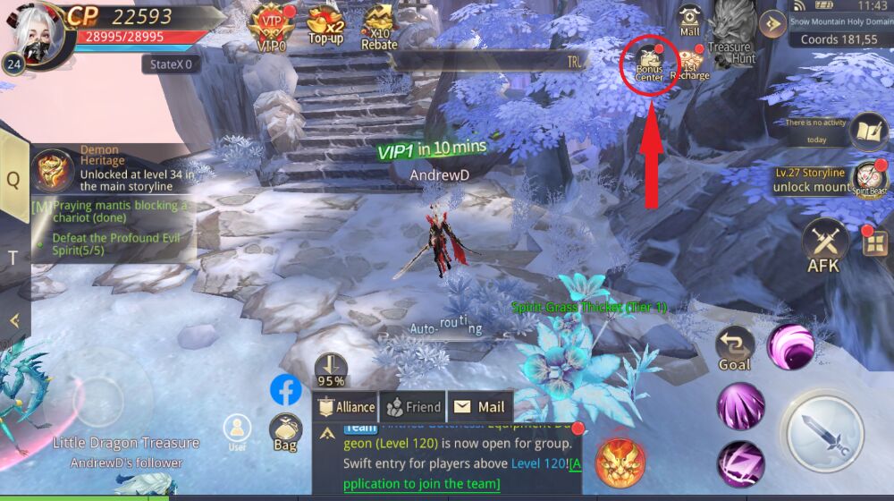 Bước 2: Tại màn hình chính, nhấp vào biểu tượng Bonus Center nằm ở góc trên bên phải màn hình.