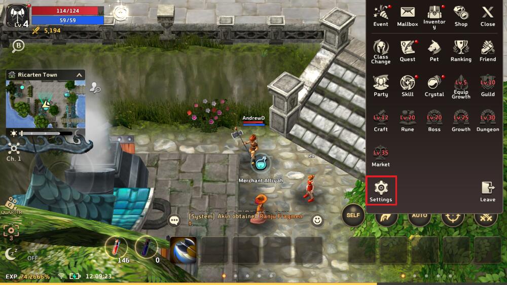 Bước 3: Tiếp tục chọn mục Settings ở phía bên dưới.