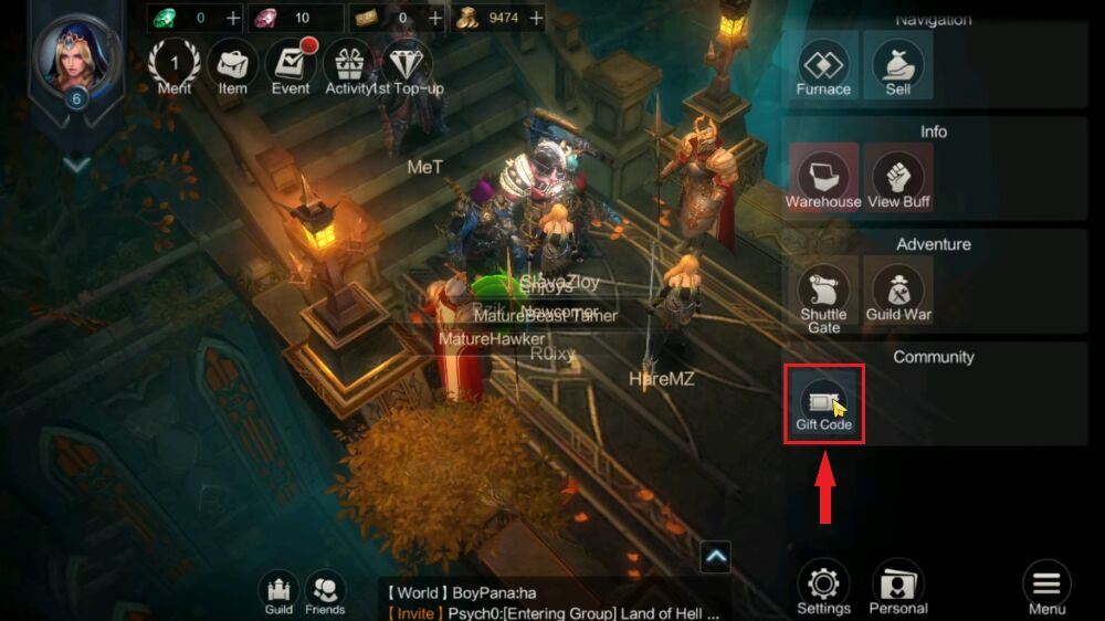 Bước 3: Chọn mục “Gift Code”.