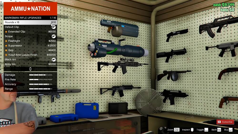 Nếu bạn muốn tích trữ súng và các loại vũ khí khác trong Grand Theft Auto V, bạn có thể mua chúng từ bất kỳ cửa hàng vũ khí Ammu-Nation nào, được biểu thị trên bản đồ bằng biểu tượng súng ngắn. Lưu ý rằng khi bạn mới bắt đầu trò chơi, sự lựa chọn vũ khí sẽ hạn chế. Tuy nhiên, khi bạn tiến trình trong câu chuyện chính, Ammu-Nation sẽ cung cấp thêm đa dạng súng và áo giáp. Bạn cũng sẽ nhận được email thông báo khi có hàng mới!